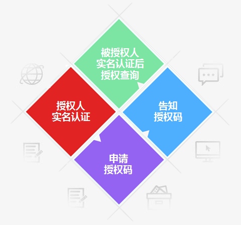 授权人(企业、个人用户)登录网站后,在线申请信用信息查询报告授权码,通过短信告知授权人,查询人依据该授权码可以限时查询授权人信用信息查询报告。